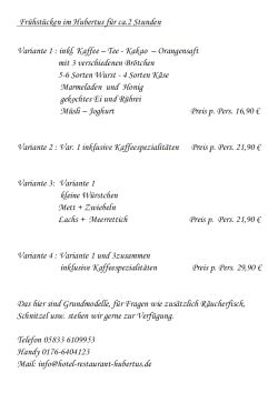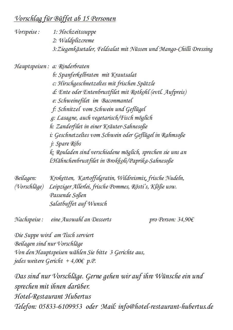 Für Veranstaltungen ab 15 Personen bieten wir außerdem folgende Speise-Vorschläge an (s.u.). Bei Fragen dazu oder